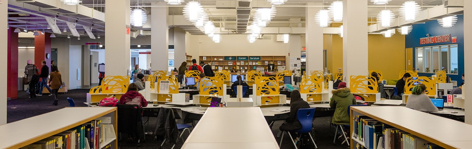 Many academic renovations need to be done in a phased manner in order to keep the building operational during the school year. Providing adequate swing space are “make or break” elements of a successful renovation project. The swing space should be as flexible as possible, as it may need to accommodate different program areas over time. A detailed construction and relocation schedule should be developed during the design phase to reduce departmental moves. Group similar program areas like classrooms or offices together and incorporate informal gathering spaces in the corridors. A steel frame building can be “opened up” to create larger spaces as was the case for the renovation of this circa 1973 outdated library and cafeteria on the Montgomery Community College Campus in Blue Bell, PA.