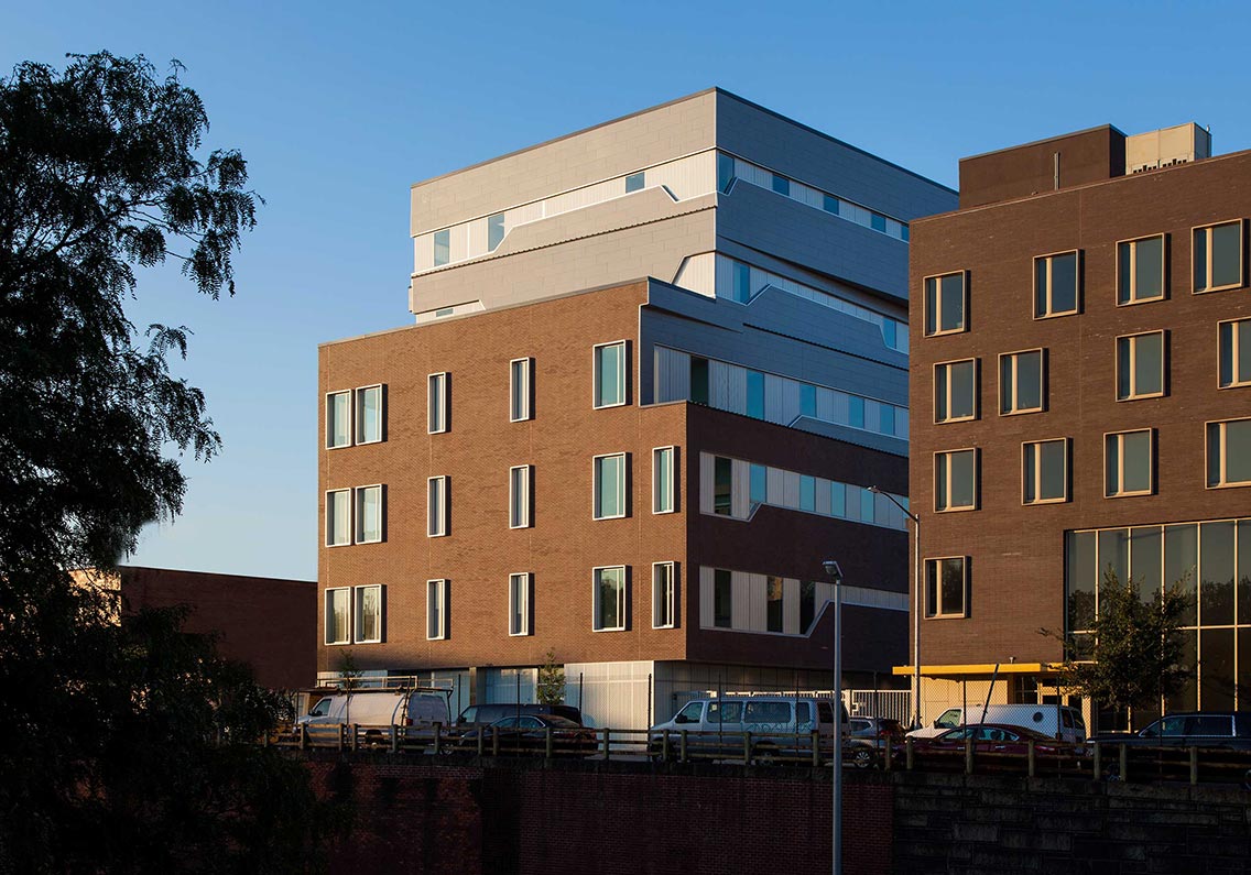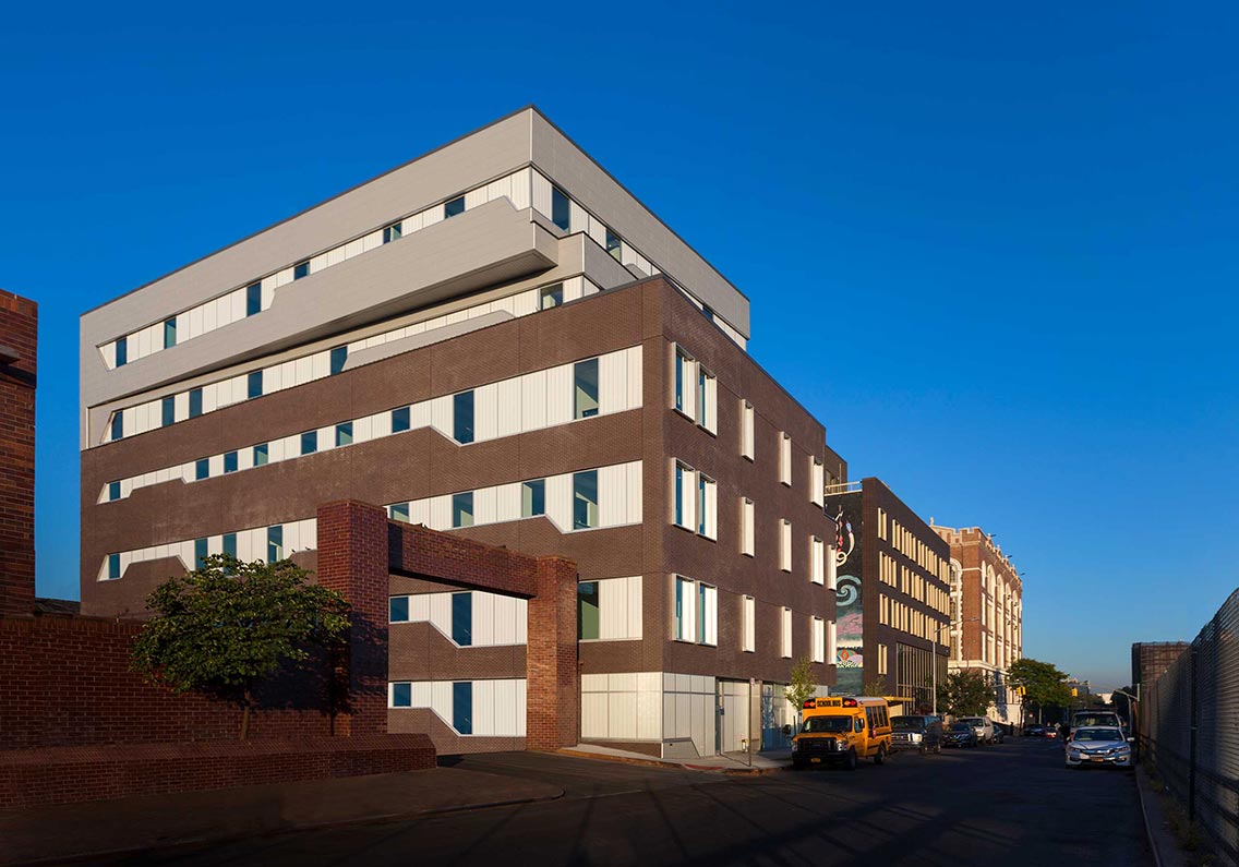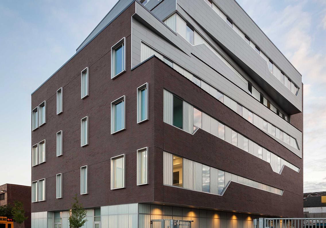 This new 50,000 sf out-of-the-ground building in the Bronx is operated by VIP Community Services, Inc., a local provider of substance abuse and alcohol treatment services. Funded by the NYS Office of Alcoholism and Substance Abuse Services (OASAS), the outpatient facility includes Article 28 and Article 31 programs, an outpatient methadone and chemical dependency clinic, methadone counseling, and administration spaces. The exterior materials selected by Posen Architects—a lightweight base of translucent glass and brick contrasted by modern zinc panels—emphasize the history and revitalization of the neighborhood.